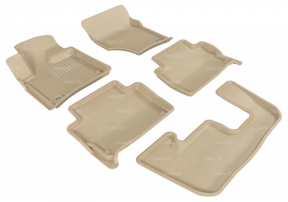Коврики 3D Sotra предназначены для определённой модели автомобиля, имеют форму, повторяющую конфигурацию пола вашего автомобиля. Объёмная технология исполнения и комбинация ворсового покрытия с прорезиненной основой позволяет получить максимальный комфорт в салоне автомобиля одновременно с надёжной защитой от грязи и влаги. Прочный материал будет надёжно и долгое время защищать салон автомобиля от загрязнений. Нижний слой выполнен из противоскользящего покрытия MagicMat для предотвращения перемещения коврика по салону. Средний слой состоит из пористой резины. Создаёт долговечный и надёжный водонепро- ницаемый барьер. Эластичные свойства слоя снижают утомляемость ног водителя и пассажиров. Верхний слой выполнен из прочного и износоустойчивого материала ковроподобной структуры. Накладка на водительском коврике служит для увеличения срока службы. Высокий бортик эффективно удерживает грязь от проникновения в салон автомобиля. Коврики легко чистятся жёсткой щёткой. При сильном загрязнении можно использовать керхер. Высыхают за 2-3 часа. Водительский коврик имеет защитный кожух накрывающий площадку отдыха левой ноги. Задние коврики выполнены с перемычкой на тоннель.