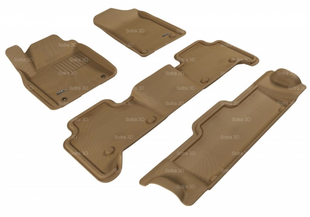 Коврики салона 3D LUX Sotra для Infiniti QX56 II (QX80) 2010-н.в., (3 ряда сид.) 3 ряда 4 части, чёрный, серый и бежевый цвет