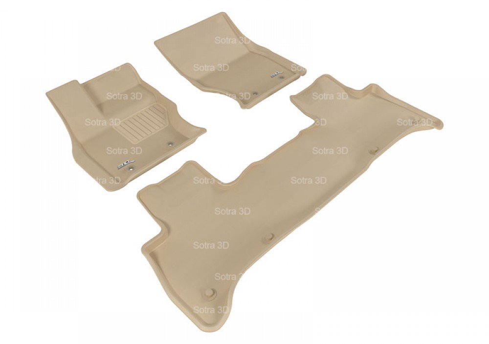 Коврики 3D Sotra предназначены для определённой модели автомобиля, имеют форму, повторяющую конфигурацию пола вашего автомобиля. Объёмная технология исполнения и комбинация ворсового покрытия с прорезиненной основой позволяет получить максимальный комфорт в салоне автомобиля одновременно с надёжной защитой от грязи и влаги. Прочный материал будет надёжно и долгое время защищать салон автомобиля от загрязнений. Нижний слой выполнен из противоскользящего покрытия MagicMat для предотвращения перемещения коврика по салону. Средний слой состоит из пористой резины. Создаёт долговечный и надёжный водонепро- ницаемый барьер. Эластичные свойства слоя снижают утомляемость ног водителя и пассажиров. Верхний слой выполнен из прочного и износоустойчивого материала ковроподобной структуры. Накладка на водительском коврике служит для увеличения срока службы. Высокий бортик эффективно удерживает грязь от проникновения в салон автомобиля. Коврики легко чистятся жёсткой щёткой. При сильном загрязнении можно использовать керхер. Высыхают за 2-3 часа. Водительский коврик имеет защитный кожух накрывающий площадку отдыха левой ноги. Задние коврики выполнены с перемычкой на тоннель.