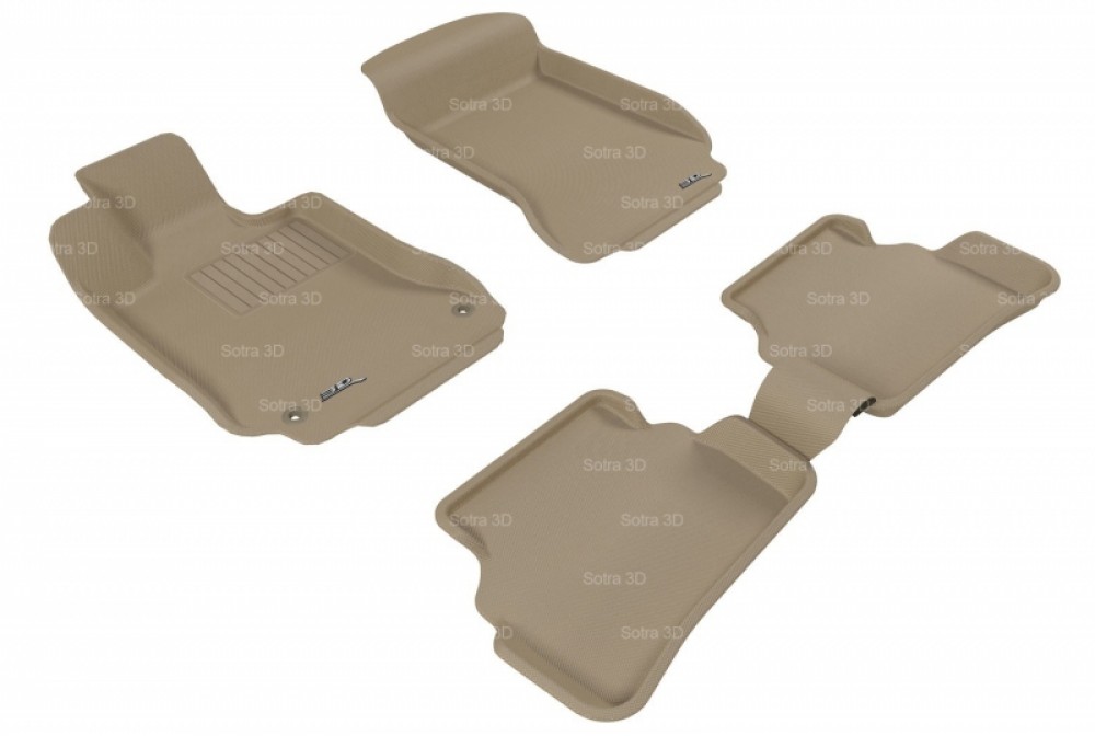 Коврики салона 3D LUX Sotra для MB W204 C-Class 2007-2014, 2 ряда 5 частей, чёрный, серый и бежевый цвет
