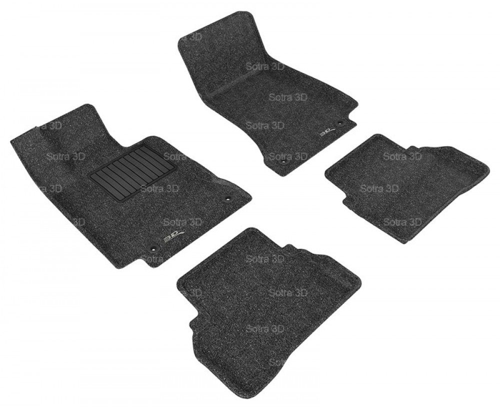 Коврики 3D Sotra предназначены для определённой модели автомобиля, имеют форму, повторяющую конфигурацию пола вашего автомобиля. Объёмная технология исполнения и комбинация ворсового покрытия с прорезиненной основой позволяет получить максимальный комфорт в салоне автомобиля одновременно с надёжной защитой от грязи и влаги. Прочный материал будет надёжно и долгое время защищать салон автомобиля от загрязнений. Нижний слой выполнен из противоскользящего покрытия MagicMat для предотвращения перемещения коврика по салону. Средний слой состоит из пористой резины. Создаёт долговечный и надёжный водонепро- ницаемый барьер. Эластичные свойства слоя снижают утомляемость ног водителя и пассажиров. Верхний слой выполнен из прочного и износоустойчивого материала ковроподобной структуры. Накладка на водительском коврике служит для увеличения срока службы. Высокий бортик эффективно удерживает грязь от проникновения в салон автомобиля. Коврики легко чистятся жёсткой щёткой. При сильном загрязнении можно использовать керхер. Высыхают за 2-3 часа. Водительский коврик имеет защитный кожух накрывающий площадку отдыха левой ноги. Задние коврики выполнены с перемычкой на тоннель.