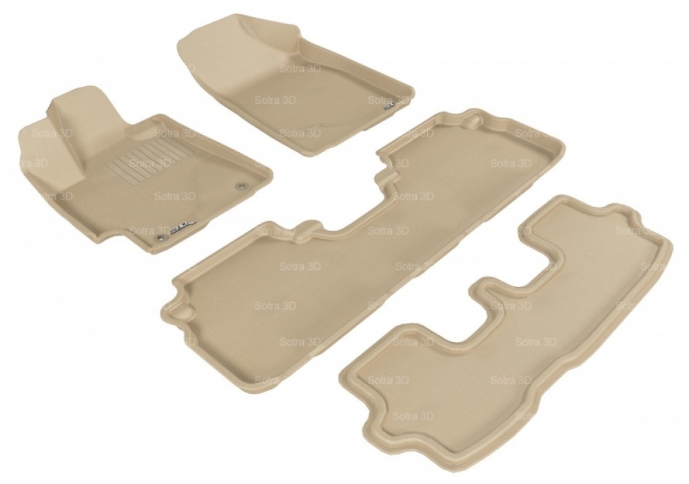 Коврики салона 3D LUX Sotra для Toyota Highlander 2007-2013, (не гибрид) 7-местн., 3 ряда 4 части, чёрный и бежевый цвет