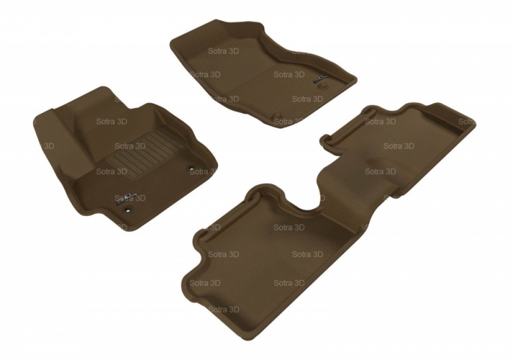 Коврики 3D Sotra предназначены для определённой модели автомобиля, имеют форму, повторяющую конфигурацию пола вашего автомобиля. Объёмная технология исполнения и комбинация ворсового покрытия с прорезиненной основой позволяет получить максимальный комфорт в салоне автомобиля одновременно с надёжной защитой от грязи и влаги. Прочный материал будет надёжно и долгое время защищать салон автомобиля от загрязнений. Нижний слой выполнен из противоскользящего покрытия MagicMat для предотвращения перемещения коврика по салону. Средний слой состоит из пористой резины. Создаёт долговечный и надёжный водонепро- ницаемый барьер. Эластичные свойства слоя снижают утомляемость ног водителя и пассажиров. Верхний слой выполнен из прочного и износоустойчивого материала ковроподобной структуры. Накладка на водительском коврике служит для увеличения срока службы. Высокий бортик эффективно удерживает грязь от проникновения в салон автомобиля. Коврики легко чистятся жёсткой щёткой. При сильном загрязнении можно использовать керхер. Высыхают за 2-3 часа. Водительский коврик имеет защитный кожух накрывающий площадку отдыха левой ноги. Задние коврики выполнены с перемычкой на тоннель.
