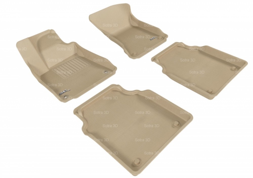 Коврики 3D Sotra предназначены для определённой модели автомобиля, имеют форму, повторяющую конфигурацию пола вашего автомобиля. Объёмная технология исполнения и комбинация ворсового покрытия с прорезиненной основой позволяет получить максимальный комфорт в салоне автомобиля одновременно с надёжной защитой от грязи и влаги. Прочный материал будет надёжно и долгое время защищать салон автомобиля от загрязнений. Нижний слой выполнен из противоскользящего покрытия MagicMat для предотвращения перемещения коврика по салону. Средний слой состоит из пористой резины. Создаёт долговечный и надёжный водонепро- ницаемый барьер. Эластичные свойства слоя снижают утомляемость ног водителя и пассажиров. Верхний слой выполнен из прочного и износоустойчивого материала ковроподобной структуры. Накладка на водительском коврике служит для увеличения срока службы. Высокий бортик эффективно удерживает грязь от проникновения в салон автомобиля. Коврики легко чистятся жёсткой щёткой. При сильном загрязнении можно использовать керхер. Высыхают за 2-3 часа. Водительский коврик имеет защитный кожух накрывающий площадку отдыха левой ноги. Задние коврики выполнены с перемычкой на тоннель.