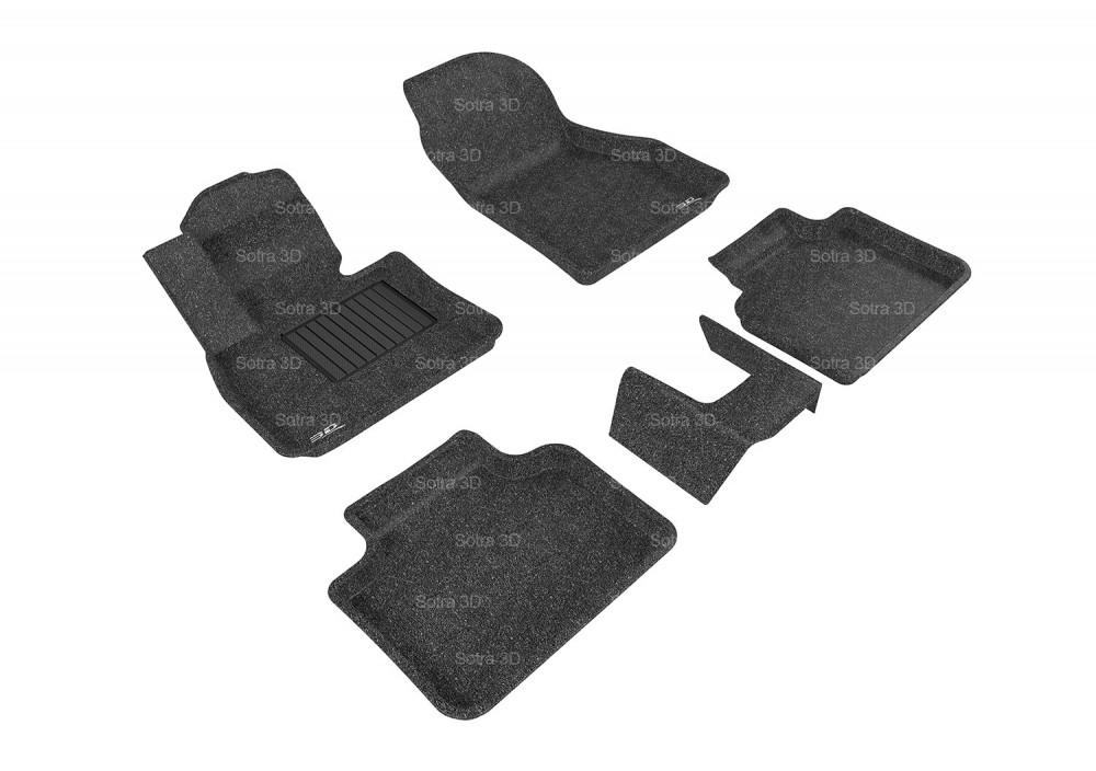 Коврики 3D Sotra предназначены для определённой модели автомобиля, имеют форму, повторяющую конфигурацию пола вашего автомобиля. Объёмная технология исполнения и комбинация ворсового покрытия с прорезиненной основой позволяет получить максимальный комфорт в салоне автомобиля одновременно с надёжной защитой от грязи и влаги. Прочный материал будет надёжно и долгое время защищать салон автомобиля от загрязнений. Нижний слой выполнен из противоскользящего покрытия MagicMat для предотвращения перемещения коврика по салону. Средний слой состоит из пористой резины. Создаёт долговечный и надёжный водонепро- ницаемый барьер. Эластичные свойства слоя снижают утомляемость ног водителя и пассажиров. Верхний слой выполнен из прочного и износоустойчивого материала ковроподобной структуры. Накладка на водительском коврике служит для увеличения срока службы. Высокий бортик эффективно удерживает грязь от проникновения в салон автомобиля. Коврики легко чистятся жёсткой щёткой. При сильном загрязнении можно использовать керхер. Высыхают за 2-3 часа. Водительский коврик имеет защитный кожух накрывающий площадку отдыха левой ноги. Задние коврики выполнены с перемычкой на тоннель.