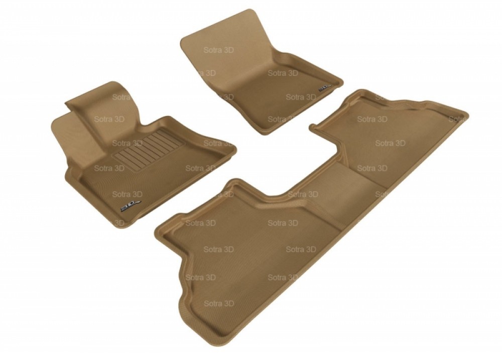 Коврики салона 3D LUX Sotra для BMW X5 E70 2006-2013, 2 ряда 3 части, чёрный, серый и бежевый цвет