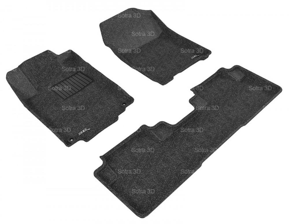 Коврики 3D Sotra предназначены для определённой модели автомобиля, имеют форму, повторяющую конфигурацию пола вашего автомобиля. Объёмная технология исполнения и комбинация ворсового покрытия с прорезиненной основой позволяет получить максимальный комфорт в салоне автомобиля одновременно с надёжной защитой от грязи и влаги. Прочный материал будет надёжно и долгое время защищать салон автомобиля от загрязнений. Нижний слой выполнен из противоскользящего покрытия MagicMat для предотвращения перемещения коврика по салону. Средний слой состоит из пористой резины. Создаёт долговечный и надёжный водонепро- ницаемый барьер. Эластичные свойства слоя снижают утомляемость ног водителя и пассажиров. Верхний слой выполнен из прочного и износоустойчивого материала ковроподобной структуры. Накладка на водительском коврике служит для увеличения срока службы. Высокий бортик эффективно удерживает грязь от проникновения в салон автомобиля. Коврики легко чистятся жёсткой щёткой. При сильном загрязнении можно использовать керхер. Высыхают за 2-3 часа. Водительский коврик имеет защитный кожух накрывающий площадку отдыха левой ноги. Задние коврики выполнены с перемычкой на тоннель.