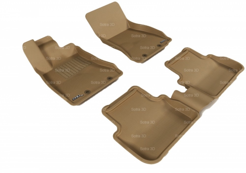 Коврики 3D Sotra предназначены для определённой модели автомобиля, имеют форму, повторяющую конфигурацию пола вашего автомобиля. Объёмная технология исполнения и комбинация ворсового покрытия с прорезиненной основой позволяет получить максимальный комфорт в салоне автомобиля одновременно с надёжной защитой от грязи и влаги. Прочный материал будет надёжно и долгое время защищать салон автомобиля от загрязнений. Нижний слой выполнен из противоскользящего покрытия MagicMat для предотвращения перемещения коврика по салону. Средний слой состоит из пористой резины. Создаёт долговечный и надёжный водонепро- ницаемый барьер. Эластичные свойства слоя снижают утомляемость ног водителя и пассажиров. Верхний слой выполнен из прочного и износоустойчивого материала ковроподобной структуры. Накладка на водительском коврике служит для увеличения срока службы. Высокий бортик эффективно удерживает грязь от проникновения в салон автомобиля. Коврики легко чистятся жёсткой щёткой. При сильном загрязнении можно использовать керхер. Высыхают за 2-3 часа. Водительский коврик имеет защитный кожух накрывающий площадку отдыха левой ноги. Задние коврики выполнены с перемычкой на тоннель.