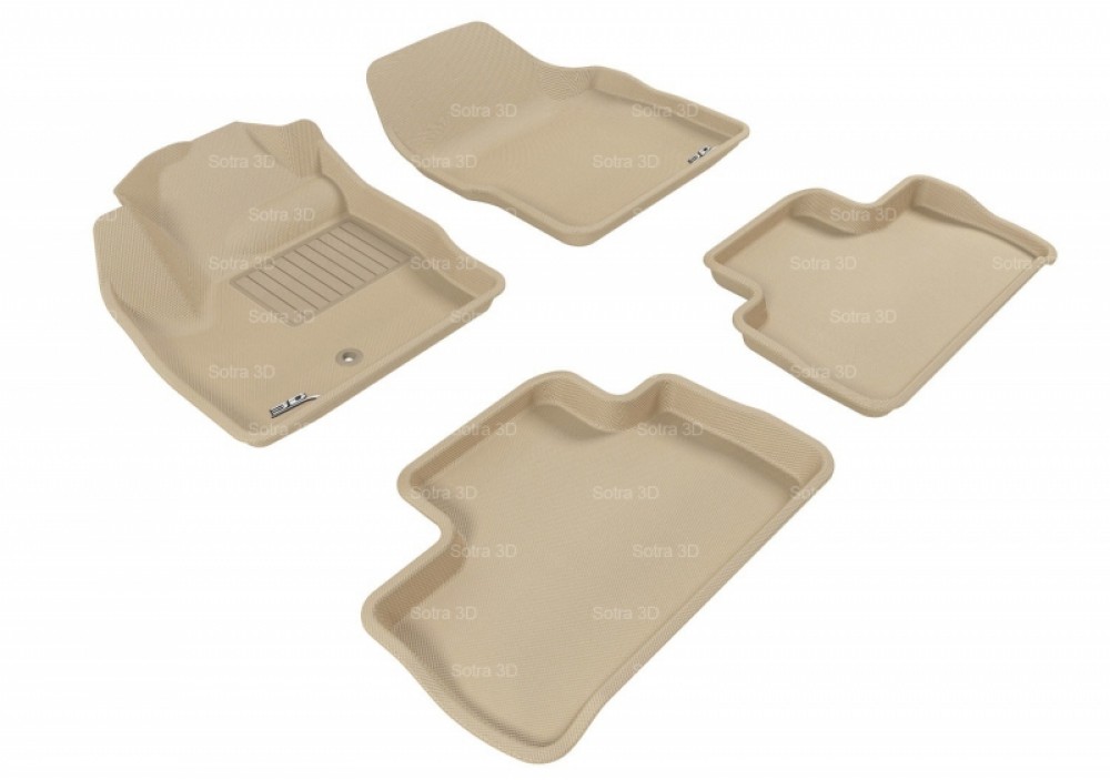Коврики 3D Sotra предназначены для определённой модели автомобиля, имеют форму, повторяющую конфигурацию пола вашего автомобиля. Объёмная технология исполнения и комбинация ворсового покрытия с прорезиненной основой позволяет получить максимальный комфорт в салоне автомобиля одновременно с надёжной защитой от грязи и влаги. Прочный материал будет надёжно и долгое время защищать салон автомобиля от загрязнений. Нижний слой выполнен из противоскользящего покрытия MagicMat для предотвращения перемещения коврика по салону. Средний слой состоит из пористой резины. Создаёт долговечный и надёжный водонепро- ницаемый барьер. Эластичные свойства слоя снижают утомляемость ног водителя и пассажиров. Верхний слой выполнен из прочного и износоустойчивого материала ковроподобной структуры. Накладка на водительском коврике служит для увеличения срока службы. Высокий бортик эффективно удерживает грязь от проникновения в салон автомобиля. Коврики легко чистятся жёсткой щёткой. При сильном загрязнении можно использовать керхер. Высыхают за 2-3 часа. Водительский коврик имеет защитный кожух накрывающий площадку отдыха левой ноги. Задние коврики выполнены с перемычкой на тоннель.
