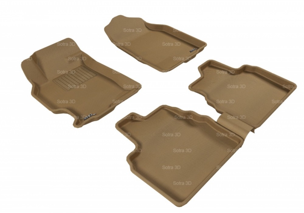 Коврики 3D Sotra предназначены для определённой модели автомобиля, имеют форму, повторяющую конфигурацию пола вашего автомобиля. Объёмная технология исполнения и комбинация ворсового покрытия с прорезиненной основой позволяет получить максимальный комфорт в салоне автомобиля одновременно с надёжной защитой от грязи и влаги. Прочный материал будет надёжно и долгое время защищать салон автомобиля от загрязнений. Нижний слой выполнен из противоскользящего покрытия MagicMat для предотвращения перемещения коврика по салону. Средний слой состоит из пористой резины. Создаёт долговечный и надёжный водонепро- ницаемый барьер. Эластичные свойства слоя снижают утомляемость ног водителя и пассажиров. Верхний слой выполнен из прочного и износоустойчивого материала ковроподобной структуры. Накладка на водительском коврике служит для увеличения срока службы. Высокий бортик эффективно удерживает грязь от проникновения в салон автомобиля. Коврики легко чистятся жёсткой щёткой. При сильном загрязнении можно использовать керхер. Высыхают за 2-3 часа. Водительский коврик имеет защитный кожух накрывающий площадку отдыха левой ноги. Задние коврики выполнены с перемычкой на тоннель.