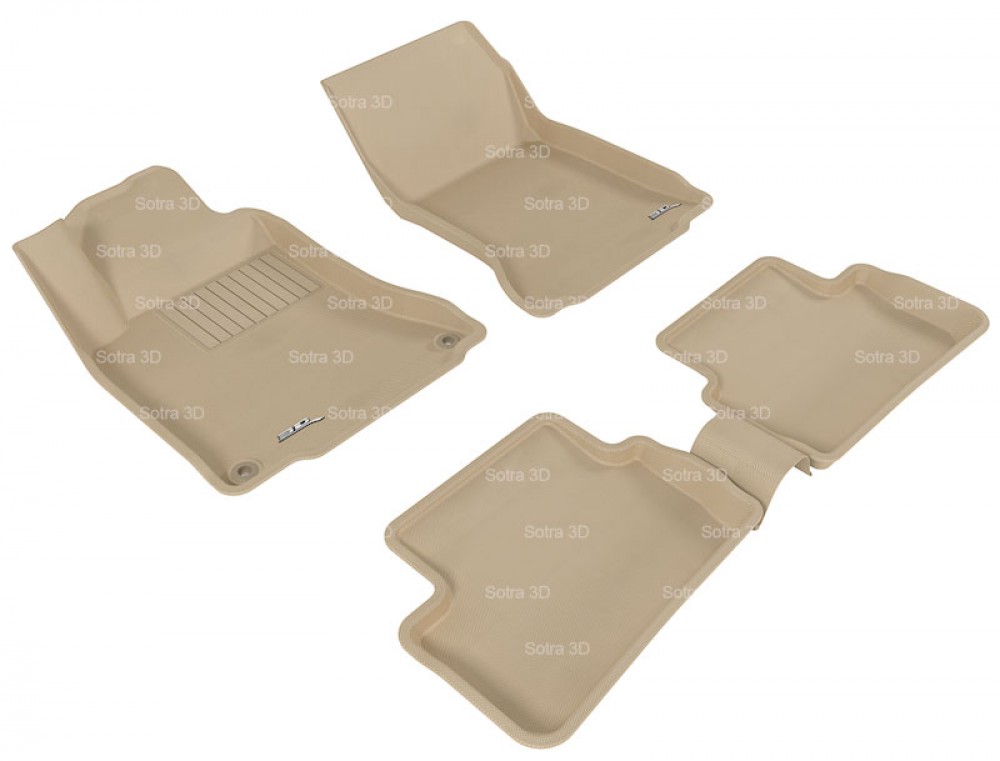Коврики 3D Sotra предназначены для определённой модели автомобиля, имеют форму, повторяющую конфигурацию пола вашего автомобиля. Объёмная технология исполнения и комбинация ворсового покрытия с прорезиненной основой позволяет получить максимальный комфорт в салоне автомобиля одновременно с надёжной защитой от грязи и влаги. Прочный материал будет надёжно и долгое время защищать салон автомобиля от загрязнений. Нижний слой выполнен из противоскользящего покрытия MagicMat для предотвращения перемещения коврика по салону. Средний слой состоит из пористой резины. Создаёт долговечный и надёжный водонепро- ницаемый барьер. Эластичные свойства слоя снижают утомляемость ног водителя и пассажиров. Верхний слой выполнен из прочного и износоустойчивого материала ковроподобной структуры. Накладка на водительском коврике служит для увеличения срока службы. Высокий бортик эффективно удерживает грязь от проникновения в салон автомобиля. Коврики легко чистятся жёсткой щёткой. При сильном загрязнении можно использовать керхер. Высыхают за 2-3 часа. Водительский коврик имеет защитный кожух накрывающий площадку отдыха левой ноги. Задние коврики выполнены с перемычкой на тоннель.