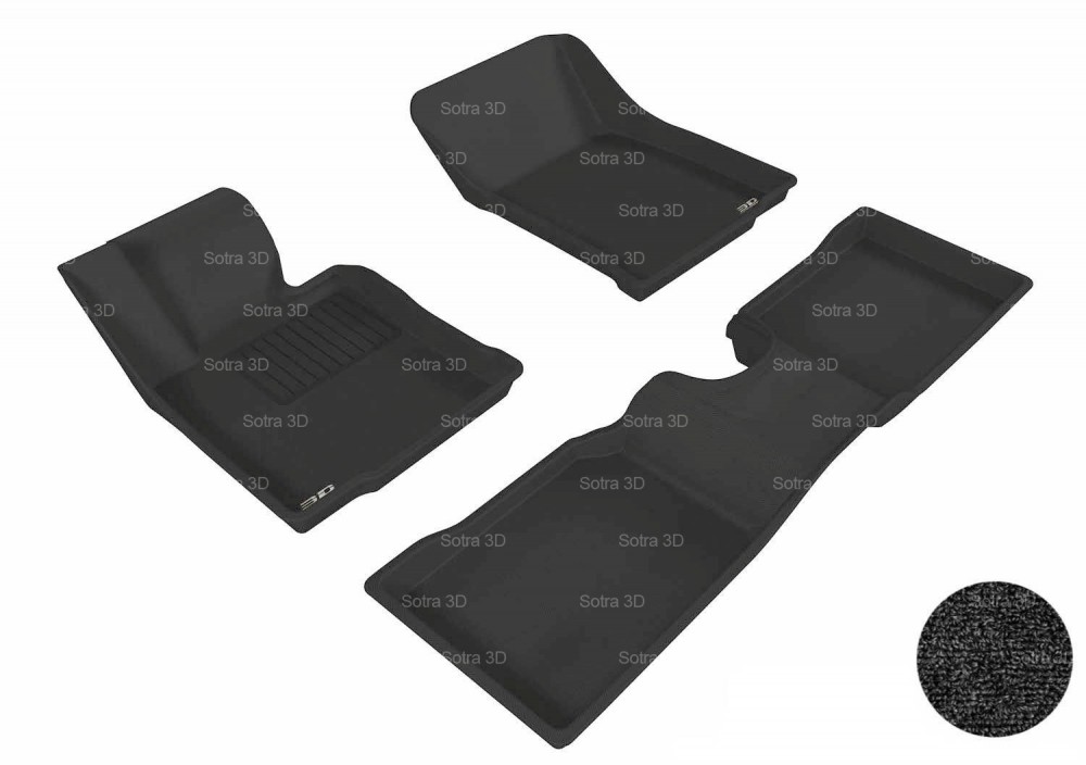 Коврики 3D Sotra предназначены для определённой модели автомобиля, имеют форму, повторяющую конфигурацию пола вашего автомобиля. Объёмная технология исполнения и комбинация ворсового покрытия с прорезиненной основой позволяет получить максимальный комфорт в салоне автомобиля одновременно с надёжной защитой от грязи и влаги. Прочный материал будет надёжно и долгое время защищать салон автомобиля от загрязнений. Нижний слой выполнен из противоскользящего покрытия MagicMat для предотвращения перемещения коврика по салону. Средний слой состоит из пористой резины. Создаёт долговечный и надёжный водонепро- ницаемый барьер. Эластичные свойства слоя снижают утомляемость ног водителя и пассажиров. Верхний слой выполнен из прочного и износоустойчивого материала ковроподобной структуры. Накладка на водительском коврике служит для увеличения срока службы. Высокий бортик эффективно удерживает грязь от проникновения в салон автомобиля. Коврики легко чистятся жёсткой щёткой. При сильном загрязнении можно использовать керхер. Высыхают за 2-3 часа. Водительский коврик имеет защитный кожух накрывающий площадку отдыха левой ноги. Задние коврики выполнены с перемычкой на тоннель.