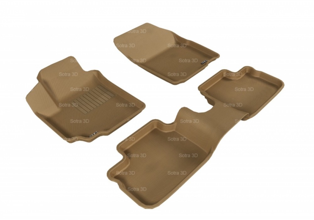 Коврики 3D Sotra предназначены для определённой модели автомобиля, имеют форму, повторяющую конфигурацию пола вашего автомобиля. Объёмная технология исполнения и комбинация ворсового покрытия с прорезиненной основой позволяет получить максимальный комфорт в салоне автомобиля одновременно с надёжной защитой от грязи и влаги. Прочный материал будет надёжно и долгое время защищать салон автомобиля от загрязнений. Нижний слой выполнен из противоскользящего покрытия MagicMat для предотвращения перемещения коврика по салону. Средний слой состоит из пористой резины. Создаёт долговечный и надёжный водонепро- ницаемый барьер. Эластичные свойства слоя снижают утомляемость ног водителя и пассажиров. Верхний слой выполнен из прочного и износоустойчивого материала ковроподобной структуры. Накладка на водительском коврике служит для увеличения срока службы. Высокий бортик эффективно удерживает грязь от проникновения в салон автомобиля. Коврики легко чистятся жёсткой щёткой. При сильном загрязнении можно использовать керхер. Высыхают за 2-3 часа. Водительский коврик имеет защитный кожух накрывающий площадку отдыха левой ноги. Задние коврики выполнены с перемычкой на тоннель.