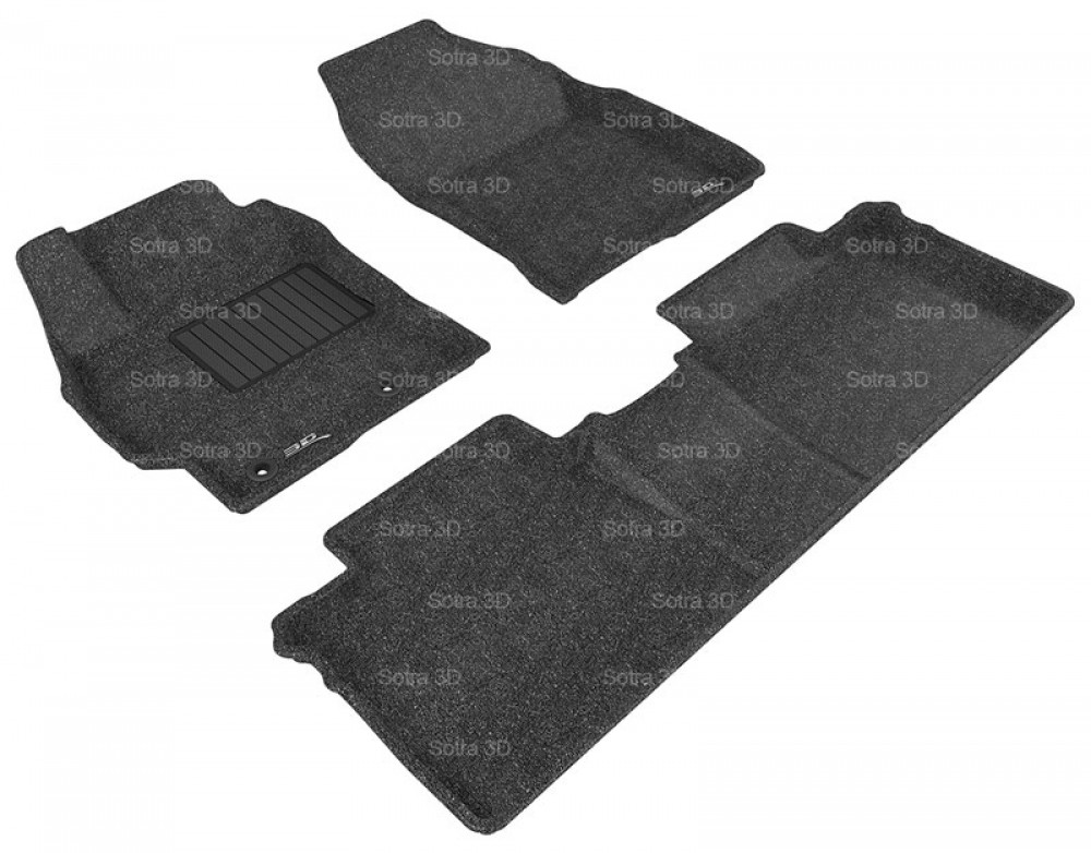 Коврики 3D Sotra предназначены для определённой модели автомобиля, имеют форму, повторяющую конфигурацию пола вашего автомобиля. Объёмная технология исполнения и комбинация ворсового покрытия с прорезиненной основой позволяет получить максимальный комфорт в салоне автомобиля одновременно с надёжной защитой от грязи и влаги. Прочный материал будет надёжно и долгое время защищать салон автомобиля от загрязнений. Нижний слой выполнен из противоскользящего покрытия MagicMat для предотвращения перемещения коврика по салону. Средний слой состоит из пористой резины. Создаёт долговечный и надёжный водонепро- ницаемый барьер. Эластичные свойства слоя снижают утомляемость ног водителя и пассажиров. Верхний слой выполнен из прочного и износоустойчивого материала ковроподобной структуры. Накладка на водительском коврике служит для увеличения срока службы. Высокий бортик эффективно удерживает грязь от проникновения в салон автомобиля. Коврики легко чистятся жёсткой щёткой. При сильном загрязнении можно использовать керхер. Высыхают за 2-3 часа. Водительский коврик имеет защитный кожух накрывающий площадку отдыха левой ноги. Задние коврики выполнены с перемычкой на тоннель.