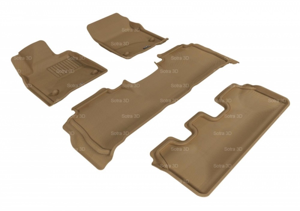 Коврики салона 3D LUX Sotra для Toyota LC 200 2007-2012, 3 ряда 4 части, чёрный, серый и бежевый цвет