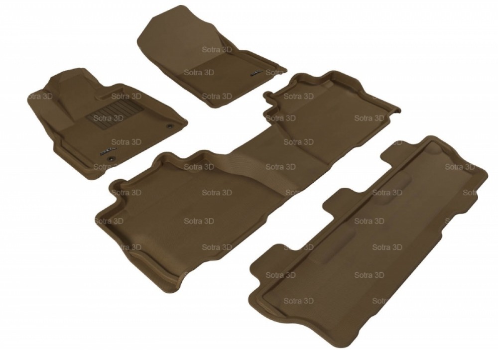 Коврики салона 3D LUX Sotra для Toyota Sequoia II 2012-н.в., 3 ряда 4 части, чёрный, серый и бежевый цвет