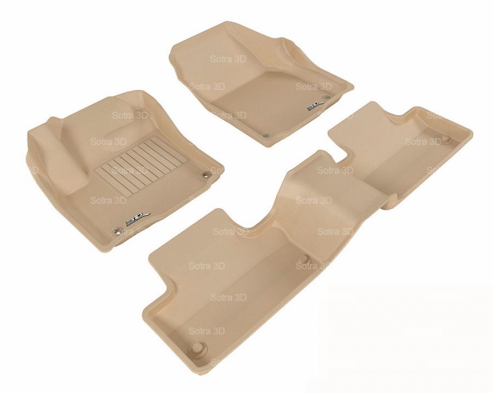 Коврики 3D Sotra предназначены для определённой модели автомобиля, имеют форму, повторяющую конфигурацию пола вашего автомобиля. Объёмная технология исполнения и комбинация ворсового покрытия с прорезиненной основой позволяет получить максимальный комфорт в салоне автомобиля одновременно с надёжной защитой от грязи и влаги. Прочный материал будет надёжно и долгое время защищать салон автомобиля от загрязнений. Нижний слой выполнен из противоскользящего покрытия MagicMat для предотвращения перемещения коврика по салону. Средний слой состоит из пористой резины. Создаёт долговечный и надёжный водонепро- ницаемый барьер. Эластичные свойства слоя снижают утомляемость ног водителя и пассажиров. Верхний слой выполнен из прочного и износоустойчивого материала ковроподобной структуры. Накладка на водительском коврике служит для увеличения срока службы. Высокий бортик эффективно удерживает грязь от проникновения в салон автомобиля. Коврики легко чистятся жёсткой щёткой. При сильном загрязнении можно использовать керхер. Высыхают за 2-3 часа. Водительский коврик имеет защитный кожух накрывающий площадку отдыха левой ноги. Задние коврики выполнены с перемычкой на тоннель.