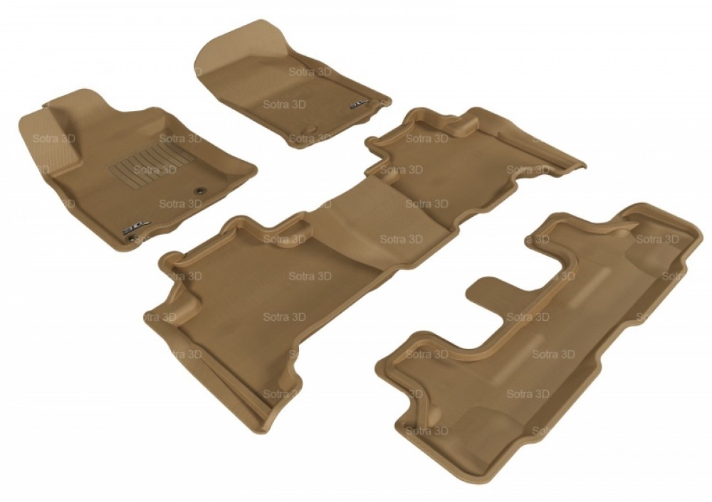 Коврики салона 3D VIP Sotra для Toyota LC 150 Prado 2009-2014, 3 ряда 4 части, чёрный, серый и бежевый цвет