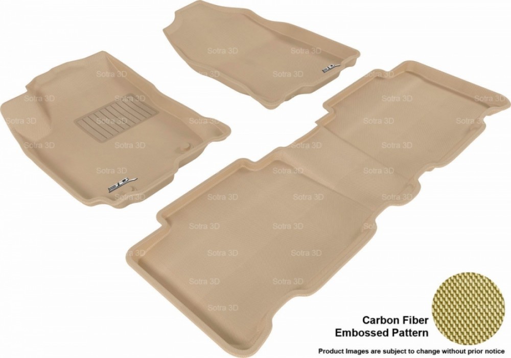 Коврики 3D Sotra предназначены для определённой модели автомобиля, имеют форму, повторяющую конфигурацию пола вашего автомобиля. Объёмная технология исполнения и комбинация ворсового покрытия с прорезиненной основой позволяет получить максимальный комфорт в салоне автомобиля одновременно с надёжной защитой от грязи и влаги. Прочный материал будет надёжно и долгое время защищать салон автомобиля от загрязнений. Нижний слой выполнен из противоскользящего покрытия MagicMat для предотвращения перемещения коврика по салону. Средний слой состоит из пористой резины. Создаёт долговечный и надёжный водонепро- ницаемый барьер. Эластичные свойства слоя снижают утомляемость ног водителя и пассажиров. Верхний слой выполнен из прочного и износоустойчивого материала ковроподобной структуры. Накладка на водительском коврике служит для увеличения срока службы. Высокий бортик эффективно удерживает грязь от проникновения в салон автомобиля. Коврики легко чистятся жёсткой щёткой. При сильном загрязнении можно использовать керхер. Высыхают за 2-3 часа. Водительский коврик имеет защитный кожух накрывающий площадку отдыха левой ноги. Задние коврики выполнены с перемычкой на тоннель.