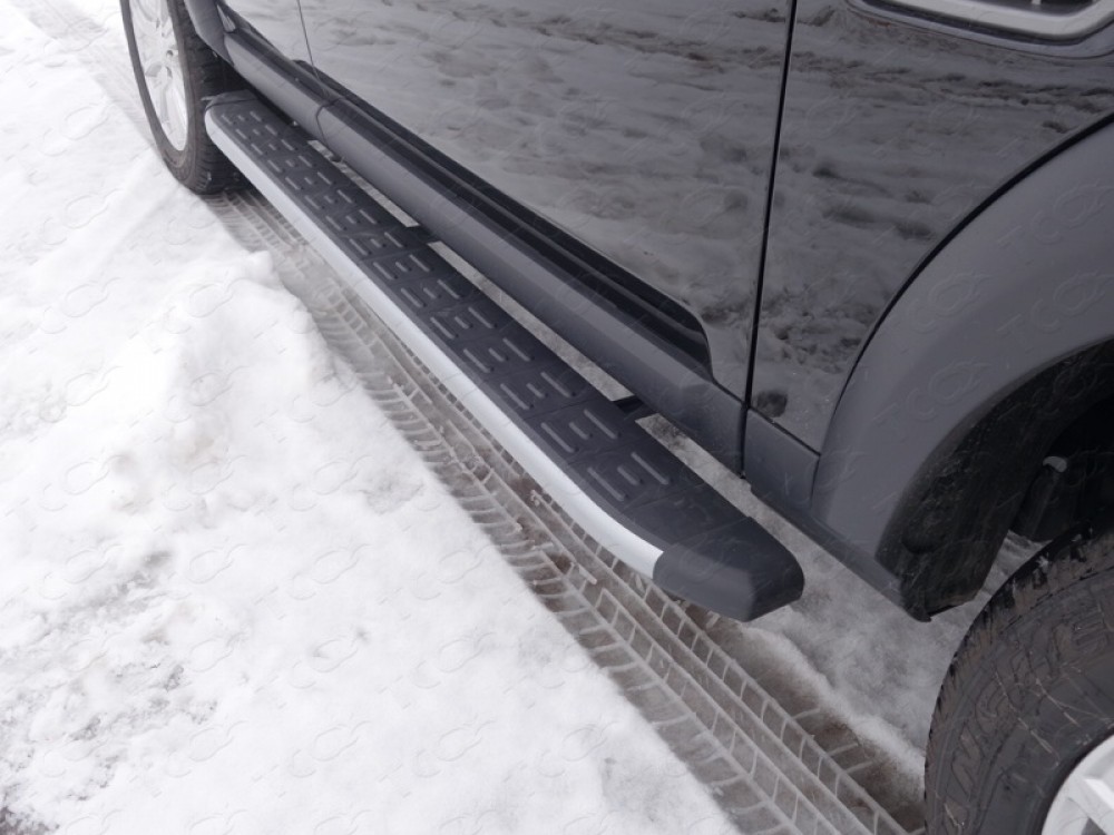Пороги алюминиевые с пластиковой накладкой (карбон серебро) 1820 мм для Land Rover Discovery IV, 2009-2017 (TCC) (LRDISSPOR15-05SL)
