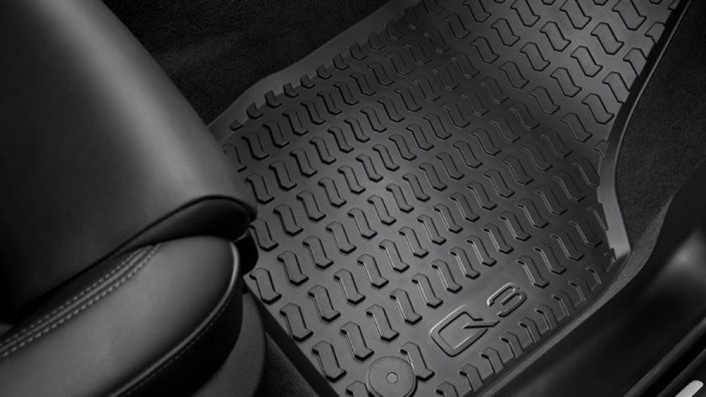Комплект передних резиновых черных ковриков в салон Audi Q3. Точно соответствующие размерам и контурам пола, с увеличенной глубиной рисунка обеспечивают максимальную защиту от сильных загрязнений. Для предотвращения проскальзывания коврики крепятся к полу с помощью стандартных креплений. Производитель: VAG