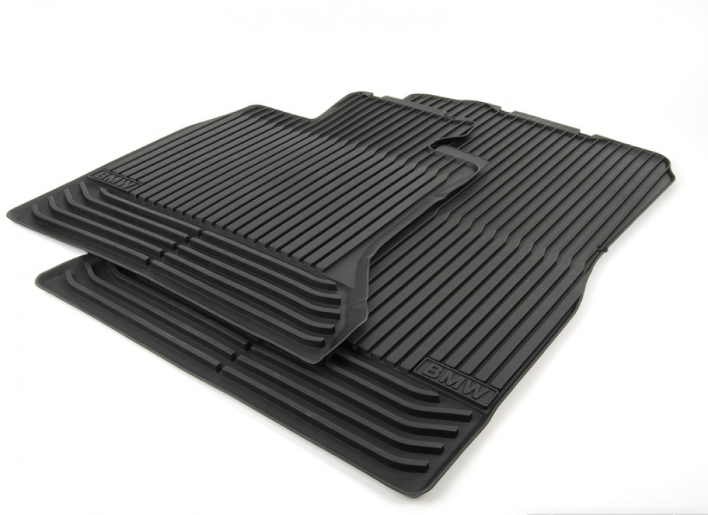 Комплект оригинальных передних ножных ковриков BMW F10 5-серия. В комплекте два коврика. Материал: чёрная резина.