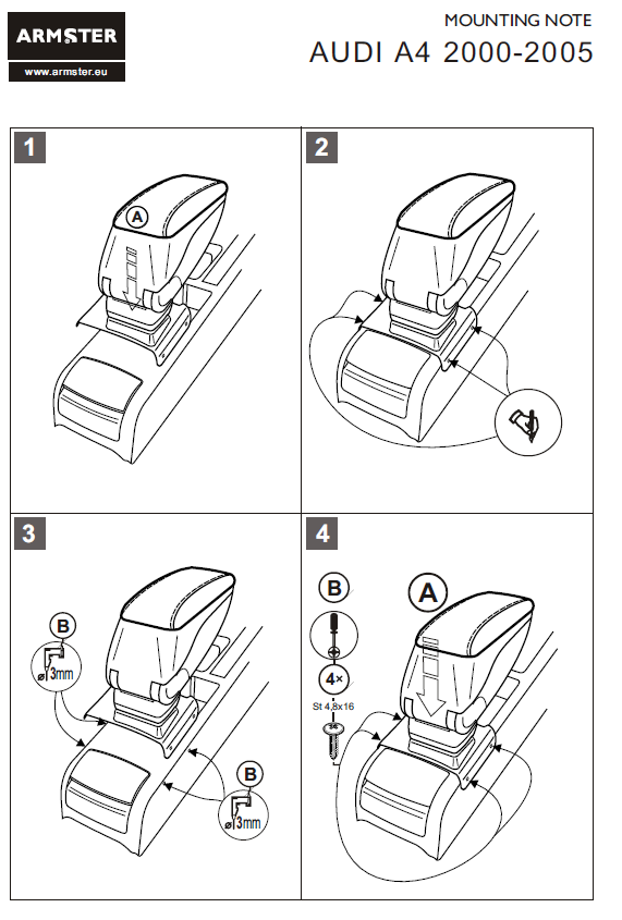 Оригинальный подлокотник Armster-1 (Венгрия) для автомобиля Audi A4 2000-2005