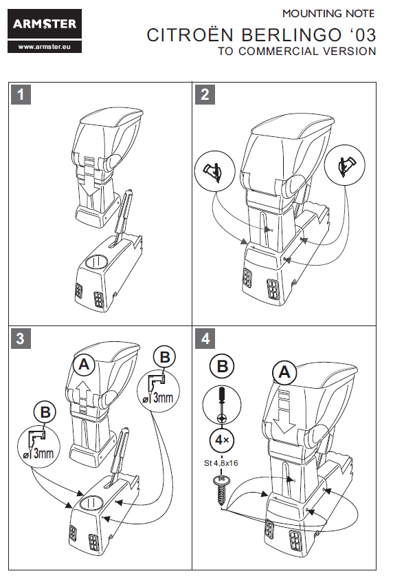 Оригинальный подлокотник Armster-1 (Венгрия) для автомобиля Citroen Berlingo 2002-2008