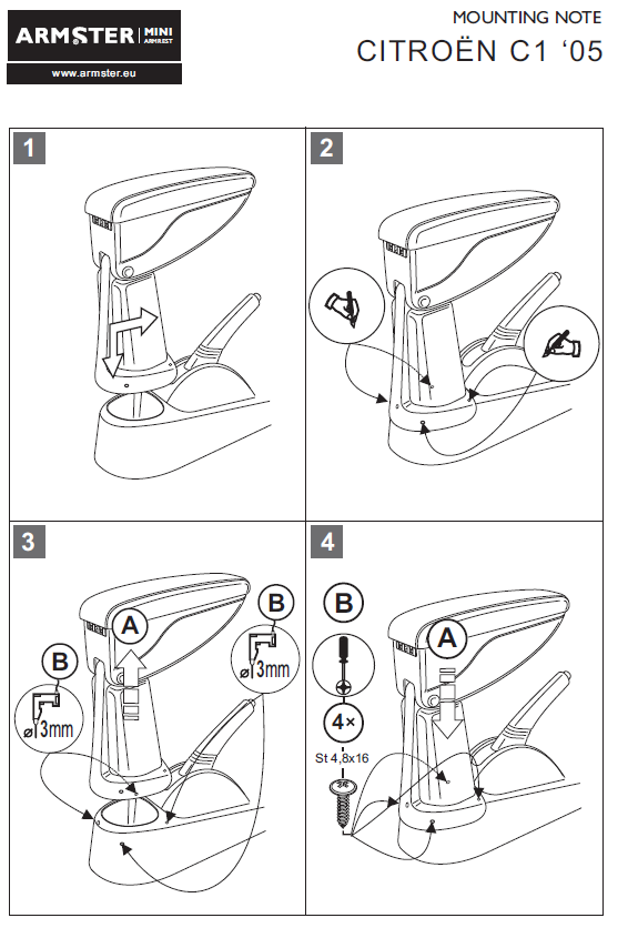 Оригинальный подлокотник Armster-1 (Венгрия) для автомобиля Citroen C1 2005-2012