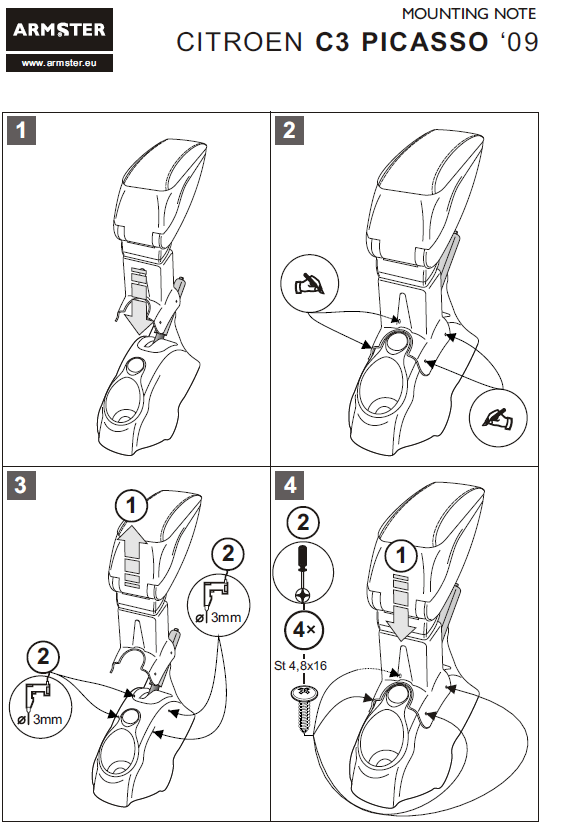 Оригинальный подлокотник Armster-1 (Венгрия) для автомобиля Citroen C3 Picasso 2009-н.в.