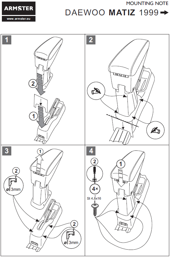 Оригинальный подлокотник Armster-1 (Венгрия) для автомобиля Daewoo Matiz 1998-н.в.