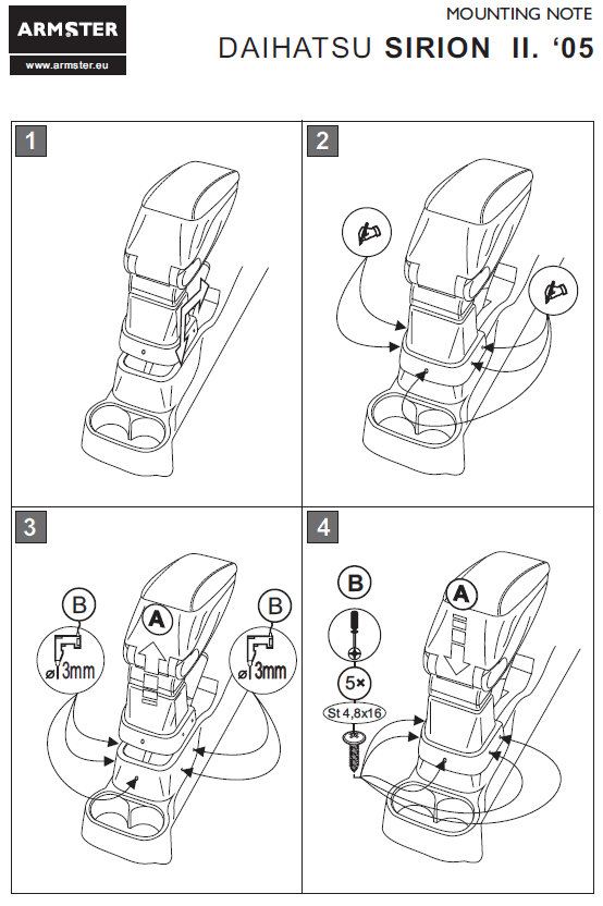 Оригинальный подлокотник Armster-1 (Венгрия) для автомобиля Daihatsu Sirion 2005-н.в.