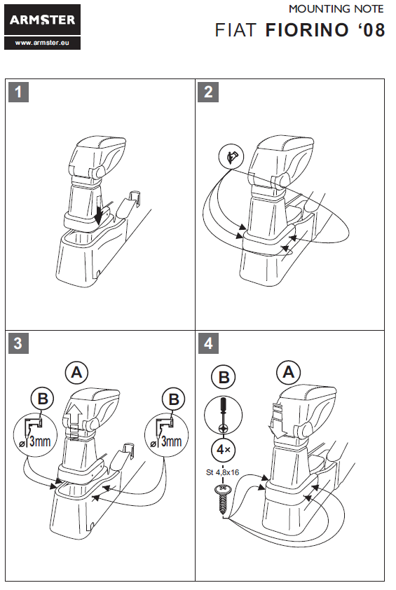 Оригинальный подлокотник Armster-1 (Венгрия) для автомобиля Fiat Fiorino 2008-н.в./ Qubo 2008-н.в.