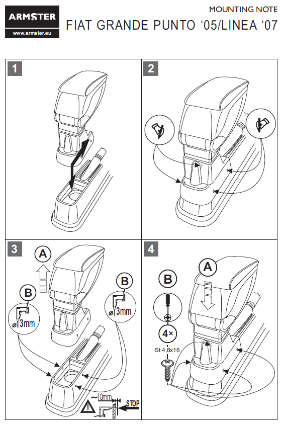 Оригинальный подлокотник Armster-1 (Венгрия) для автомобиля Fiat Grande Punto 2005-н.в./ Fiat Linea 2007-н.в.