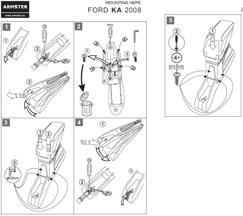 Оригинальный подлокотник Armster-1 (Венгрия) для автомобиля Ford Ka 2008-н.в.