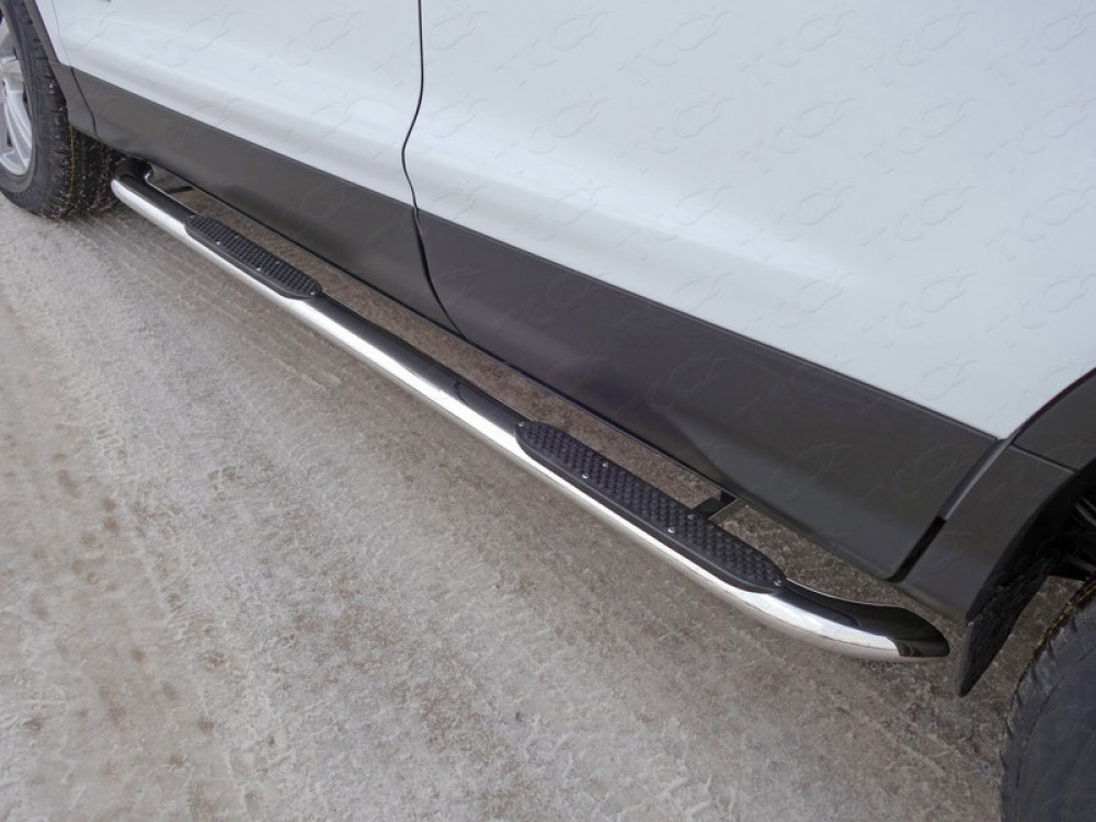Пороги овальные гнутые с накладкой 75х42 мм для Ford Kuga 2016- н.в., (TCC)