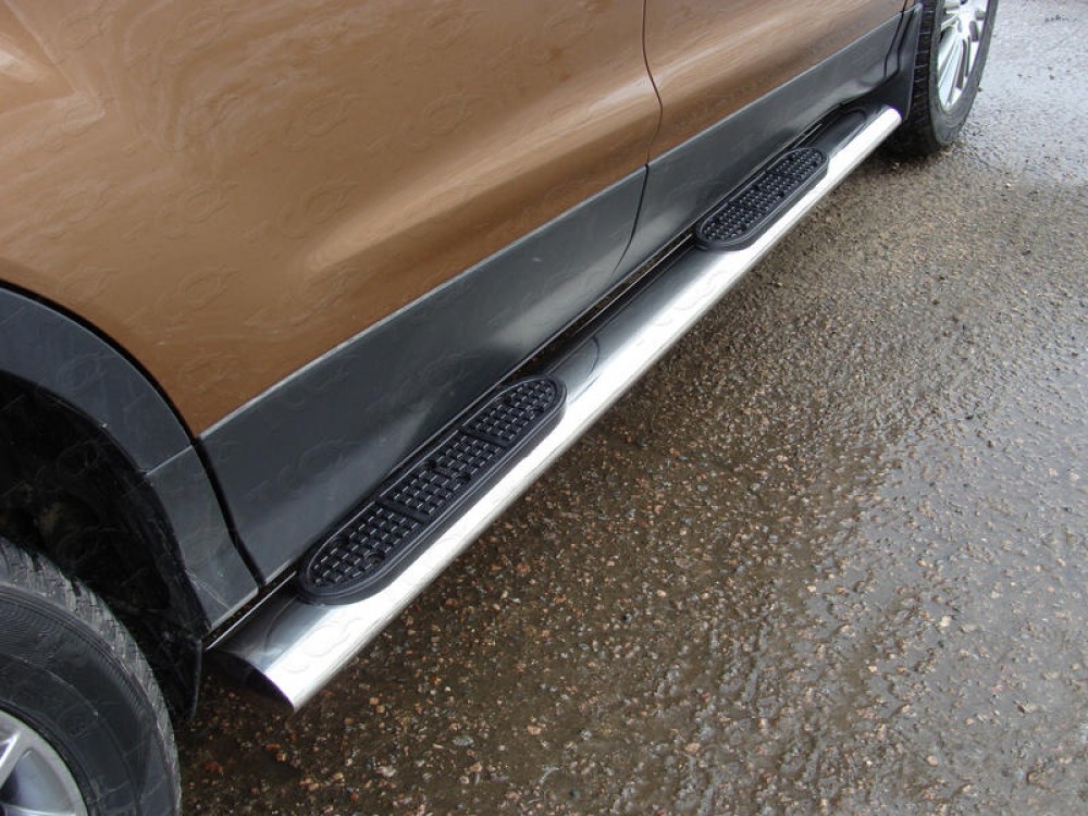 Пороги овальные с накладкой 120х60 мм для Ford Kuga 2016- н.в., (TCC)