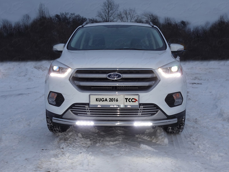 Рамка номера (комплект). Решетка радиатора 12 мм. Защита передняя нижняя (овальная с ДХО) 75х42 мм для Ford Kuga 2016- н.в., (TCC)